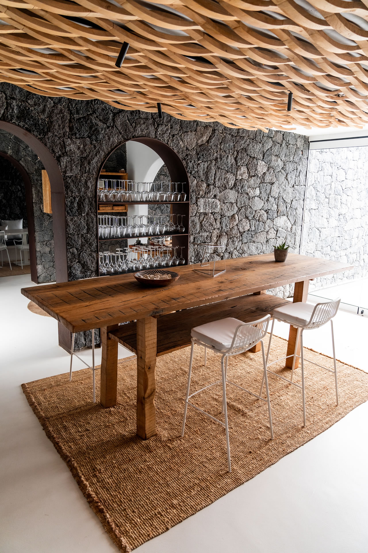 Nuestro restaurante se erige frente al mar en una simbiosis perfecta con nuestro entorno y nuestro clima. Un ambiente conectado con la naturaleza a través de espacios abiertos al cielo, materiales autóctonos como la roca volcánica y los detalles vegetales más representativos de nuestra flora.