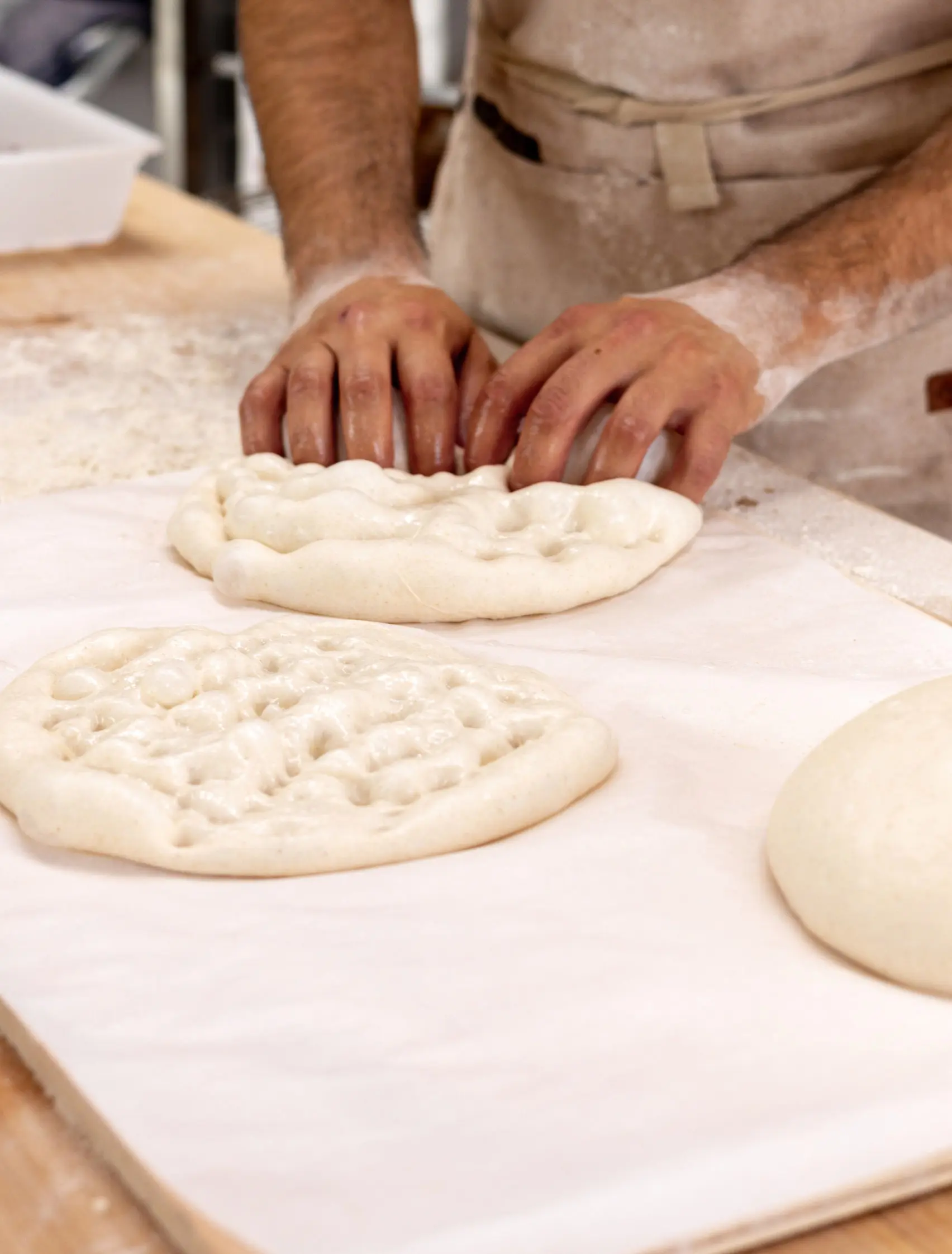 In our bakery we combine the most modern equipment with wood-fired ovens with recirculating heat, specifically built by experts in traditional baking.
